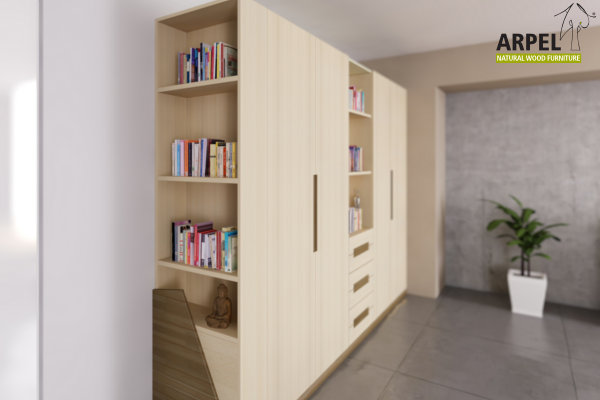 Il modulo libreria laterale-terminale che si può aggiungere agli armadi lineari o ad angolo è una Novità in termini di arredamento e la sua presenza può arricchire la vostra stanza di un ingresso contenitore posto a fianco del vostro armadio.